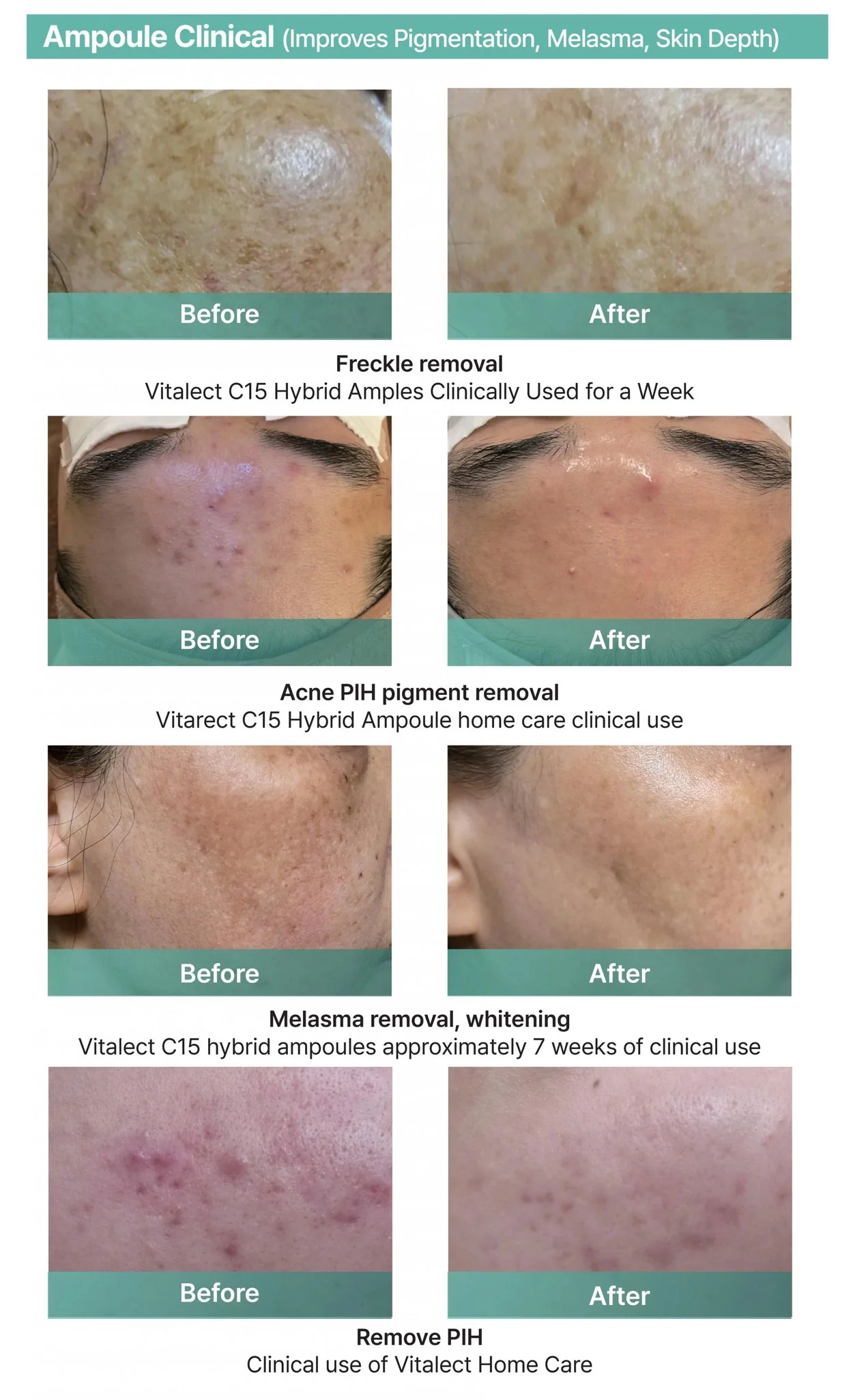 Sản phẩm này không chỉ giúp làm sáng da và làm mờ thâm nám một cách hiệu quả mà còn đi sâu vào việc tăng sinh collagen, cải thiện sẹo lõm và nếp nhăn, đồng thời phục hồi da tổn thương một cách nhanh chóng. Với hệ thống sản xuất "Đặt hàng → Sản xuất" độc đáo, mỗi ống ampoule đều đảm bảo độ tươi mới và hiệu quả hoạt động của Vitamin C ở mức cao nhất.